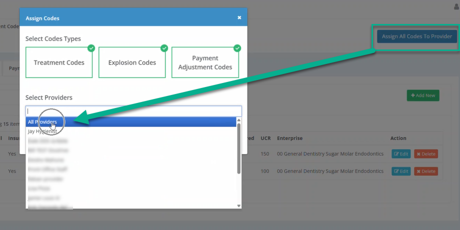 1. Once all codes are updated, select the option to "Assign all codes to provider".